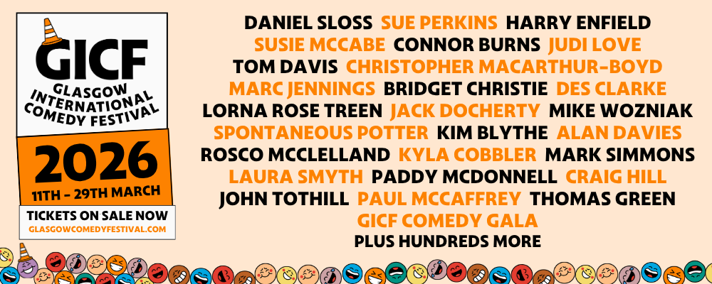 The 2026 Glasgow International Comedy Festival is shaping up to be the best yet. Incredible headliners, a wide variety of fun shows and at venues all across Glasgow in March. There really is something for everyone. Check out all the headline shows announced so far here.
